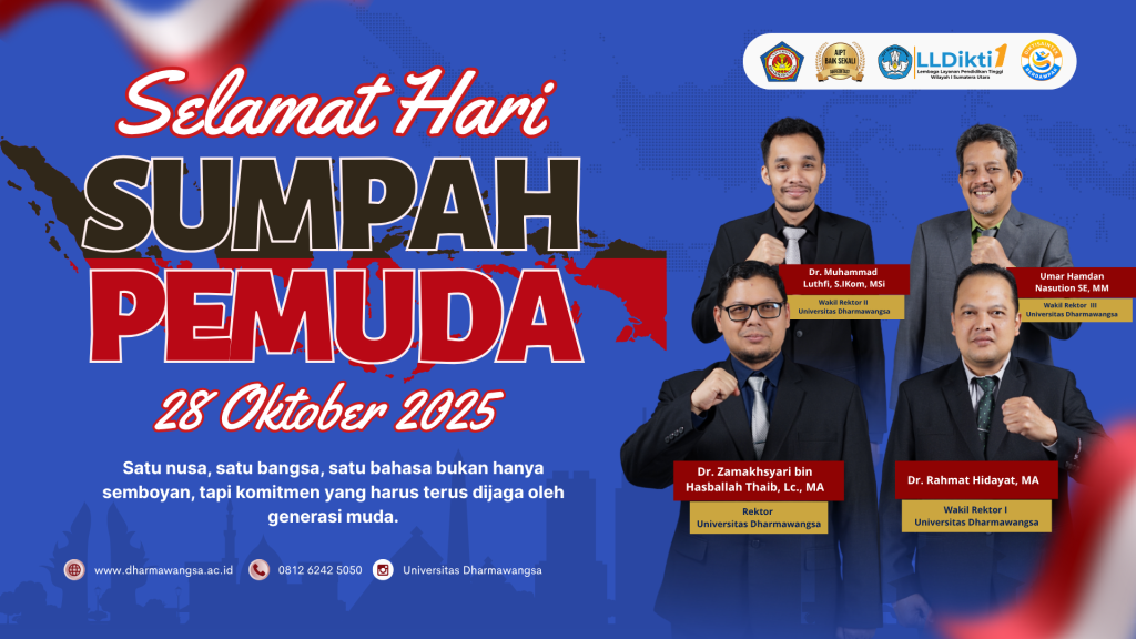 Civitas Akademikan Universitas Dharmawangsa mengucapkan Selamat memperingati Hari Sumpah Pemuda 28 Oktober 2025.