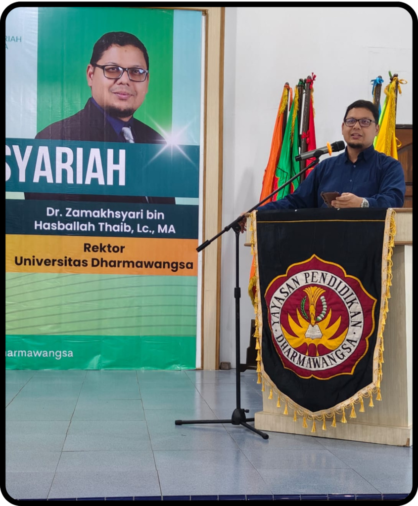 Kegiatan Yang Dihadiri Oleh Ratusan Mahasiswa, Dosen, Serta Pimpinan Universitas Ini Dibuka Secara Resmi Oleh Rektor Universitas Dharmawangsa, Bapak Dr. Zamakhsari Bin Hasballah Thaib, Lc., MA. Dalam Sambutannya, Rektor Menyampaikan Apresiasi Kepada Bank Syariah Indonesia Atas Kesediaannya Berbagi Ilmu Dan Pengalaman Di Tengah Dinamika Pertumbuhan Ekonomi Syariah Nasional.