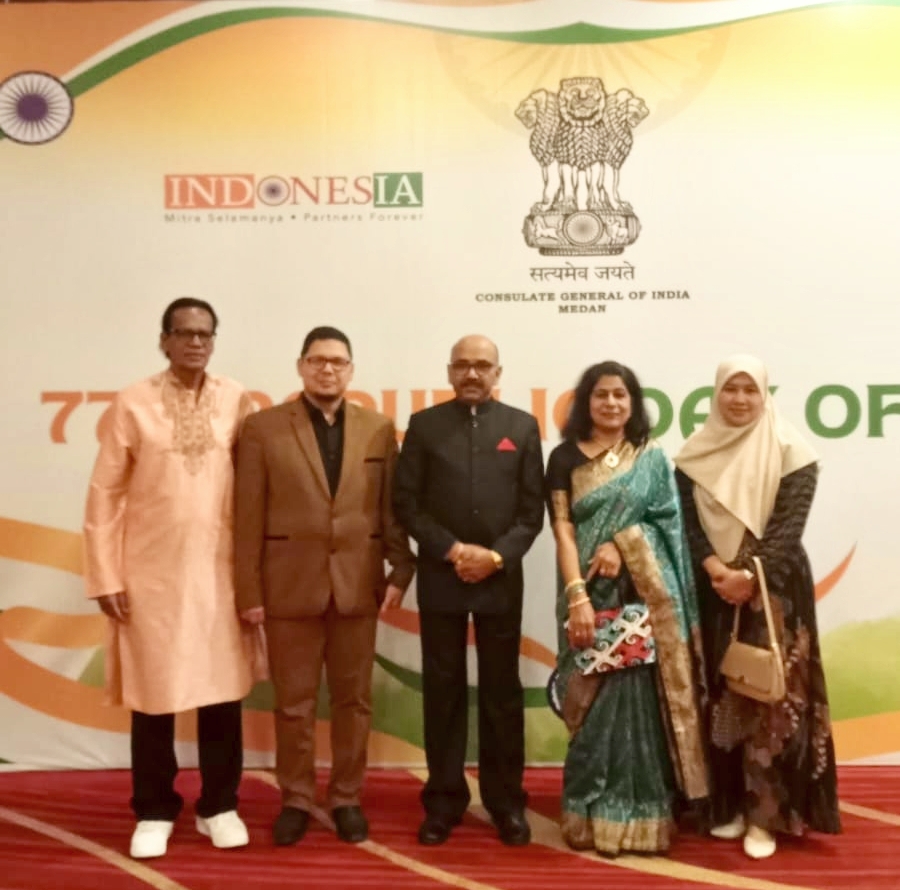 Medan, Januari 2026 — Rektor Universitas Dharmawangsa, Dr. H. Zamakhsyari Bin Hasballah Thaib, Lc., MA menghadiri kegiatan Dinner Reception dalam rangka Peringatan Hari Republik India ke-77 tanggal 26 Januari 2026 yang diselenggarakan oleh Konsulat Jenderal India di Medan. Kegiatan tersebut berlangsung di Grand Ballroom, Lantai 2 JW Marriott Hotel Medan. Acara ini merupakan agenda resmi yang dihadiri oleh sejumlah tamu undangan dari berbagai kalangan, termasuk perwakilan instansi pemerintah, tokoh masyarakat, akademisi, serta mitra dan relasi Konsulat Jenderal India di Medan. Suasana kegiatan berlangsung khidmat dan penuh kehangatan sebagai bentuk perayaan Hari Nasional India sekaligus mempererat hubungan persahabatan antarnegara.