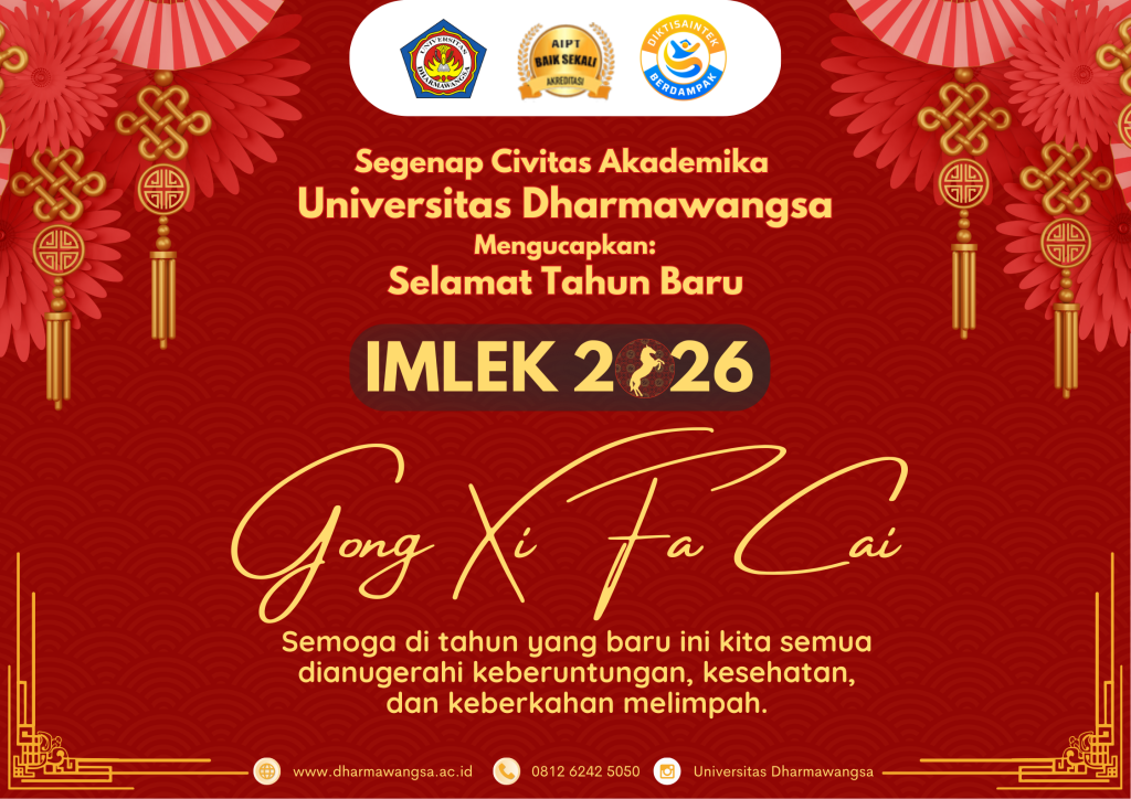 Civitas Akademika Universitas Dharmawangsa mengucapkan Selamat Tahun Baru Imlek, Gong Xi Fa Cai.